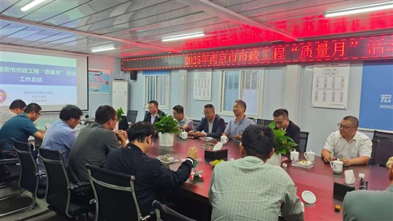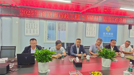 2025年10月14 日,南京市市政工程质量月活动小结会在宏大建设集团长江大保护项目部召开。本次会议由南京市政工程行业协会科技专委会牵头组织,南京市市政工程质量安全监督站综合科张远、协会副会长朱建祥、科技专委会主任徐庆平、副主任黄峰及 12 家质量月活动实施单位代表齐聚一堂,系统复盘活动成效、固化活动成果,部署后续质量提升工作。