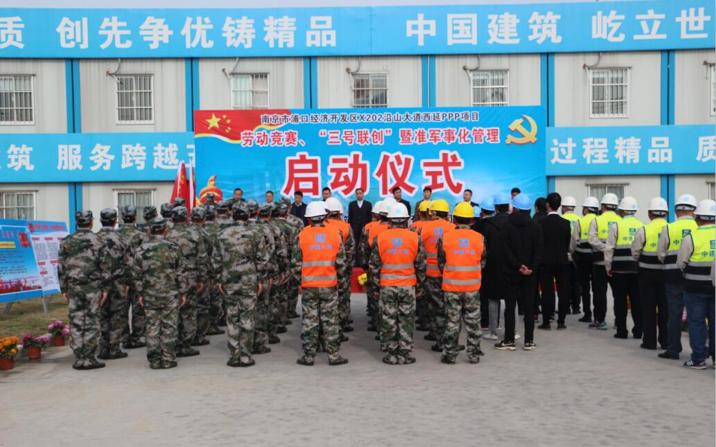 11月20日,伴随着“令行禁止,使命必达”高亢嘹亮的口号、整齐划一的队形,中建八局第三建设有限公司基础设施分公司浦口经济开发区X202沿山大道西延PPP项目劳动竞赛、“三号联创”暨准军事化管理启动仪式拉开了序幕。南京市总工会生产保护部部长张军、处长蔡敬堂,浦口经济开发区管委会工程局副局长冯海林,南京中建沿山大道开发建设有限公司总经理顾荣富,公司工会副主席余勇、团委书记王鹏,基础设施分公司党总支书记汤彬以及项目管理公司、监理单位各位领导,项目全体员工、农名工兄弟近80人参加了仪式。基础设施分公司党总支副书记、工会主席谢中秋主持。