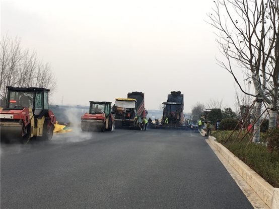 同力建设江北新区滨江大道二期沥青摊铺工程竣工